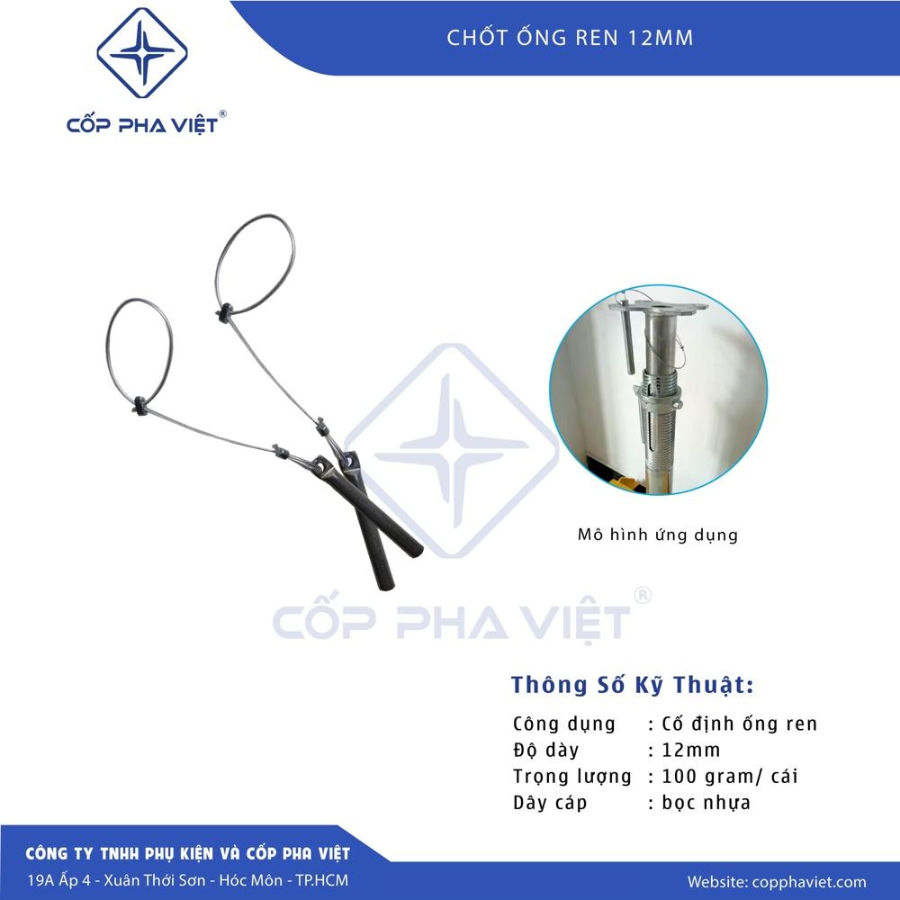 Chốt xích ống ren cây chống 12 ly bọc nhựa là một sản phẩm quan trọng trong hệ thống giàn giáo, đảm bảo an toàn và hiệu quả cho công trình xây dựng. Với chất lượng cao, độ bền vượt trội và giá cả cạnh tranh, sản phẩm của CỐP PHA VIỆT là sự lựa chọn lý tưởng cho các chủ đầu tư, nhà thầu, cửa hàng vật liệu xây dựng, kỹ sư xây dựng và thợ xây. Hãy liên hệ với chúng tôi ngay hôm nay để được tư vấn và đặt hàng. Bạn cũng có thể tham khảo thêm các sản phẩm khác của chúng tôi như Ống ren cây chống tán đúc mẫu mới giá tốt, Đế cây chống 140 x 140 x 5 ly hàng chất lượng và Đế cây chống 120 x 120 x 5 ly để hoàn thiện hệ thống giàn giáo của bạn. Để biết thêm chi tiết về sản phẩm Chốt xích ống ren cây chống 12 ly bọc nhựa, hãy truy cập website của chúng tôi: CỐP PHA VIỆT tại https://copphaviet.com/. Đừng quên lựa chọn sản phẩm chất lượng để đảm bảo an toàn tuyệt đối cho công trình của bạn!