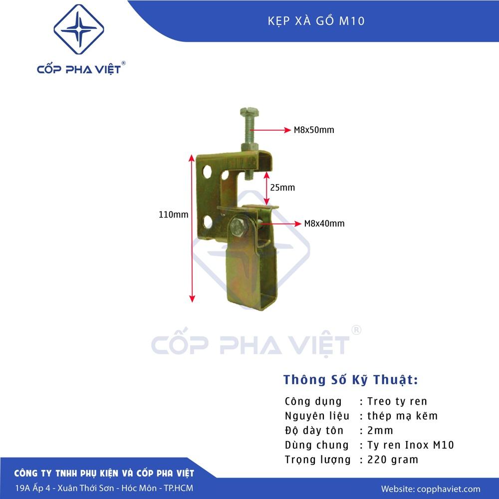 • Tai treo: Là phần nhô ra của thân kẹp, được thiết kế để bắt vít với ty ren M10. Lỗ bắt vít được gia công chính xác, đảm bảo độ khít và an toàn khi lắp đặt.