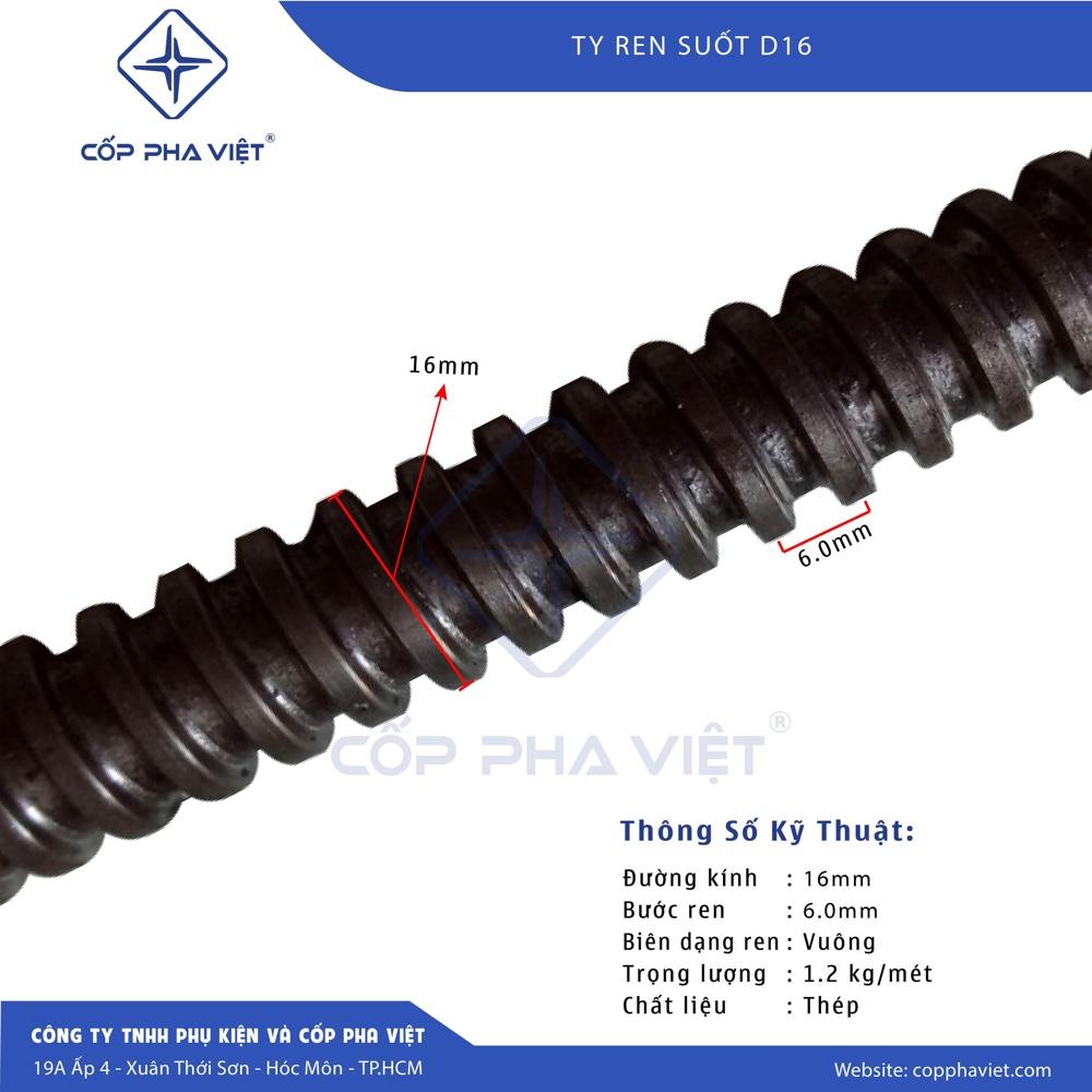 - Giá thành của Ty ren D16 là bao nhiêu? Giá thành của Ty ren D16 phụ thuộc vào số lượng và thời điểm đặt hàng. Vui lòng liên hệ CỐP PHA VIỆT để được báo giá chính xác.